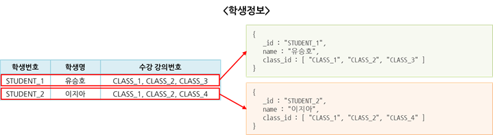 - 조회성능이 좋고, 한 document에 모든 정보가 담겨 있어, 한번에 모두 업데이트 할 수 있음