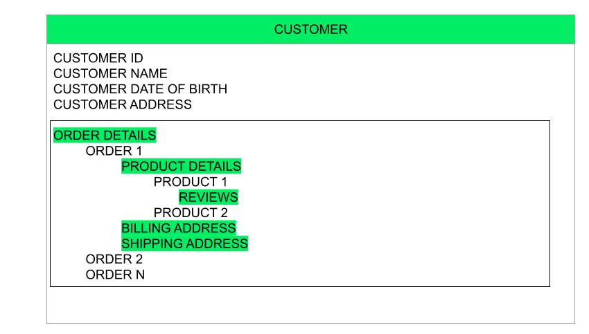 - no need to reference multiple documents or collections to view data of a single customer