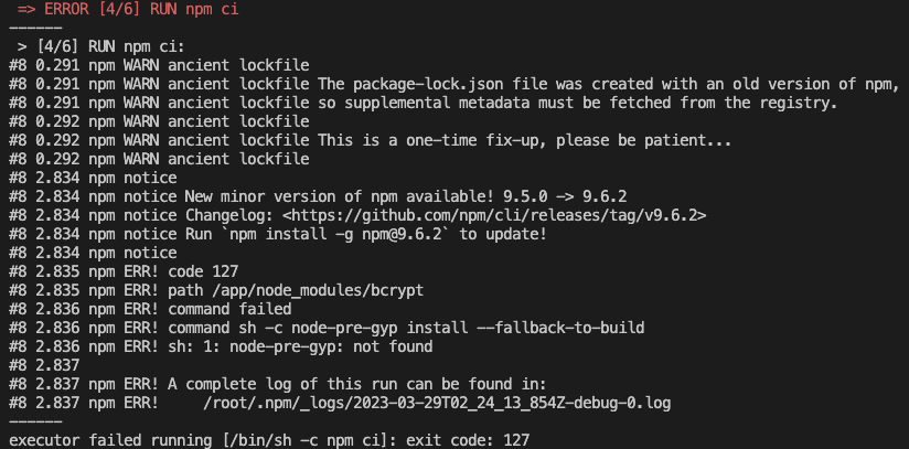 1. RUN npm ci 했을 때, npm code 127 에러???