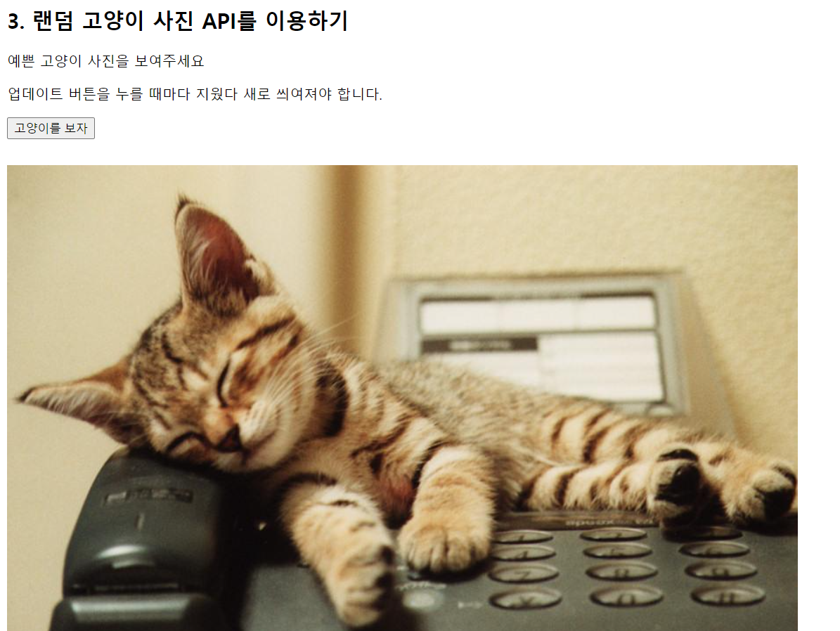 버튼을 클릭하면 새로운 고양이 사진을 무한정 보여준다.